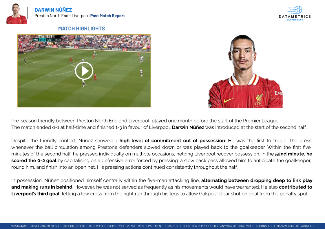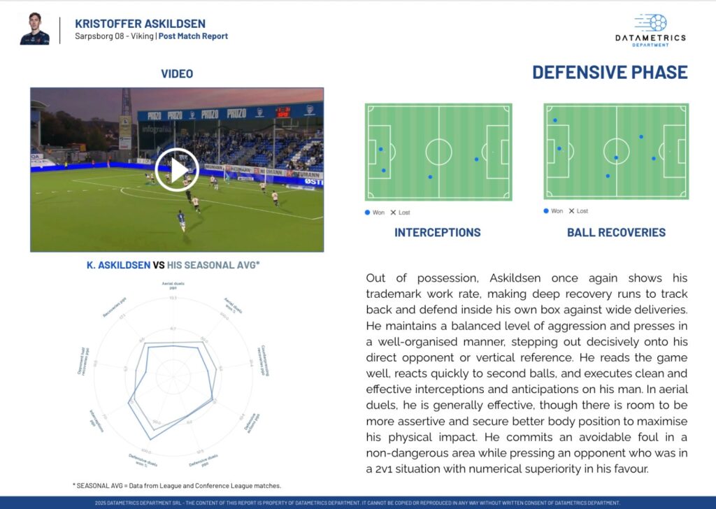The Post Match Player Report provides professional footballers with a comprehensive, data-driven analysis aimed at enhancing their technical, tactical, and performance development.